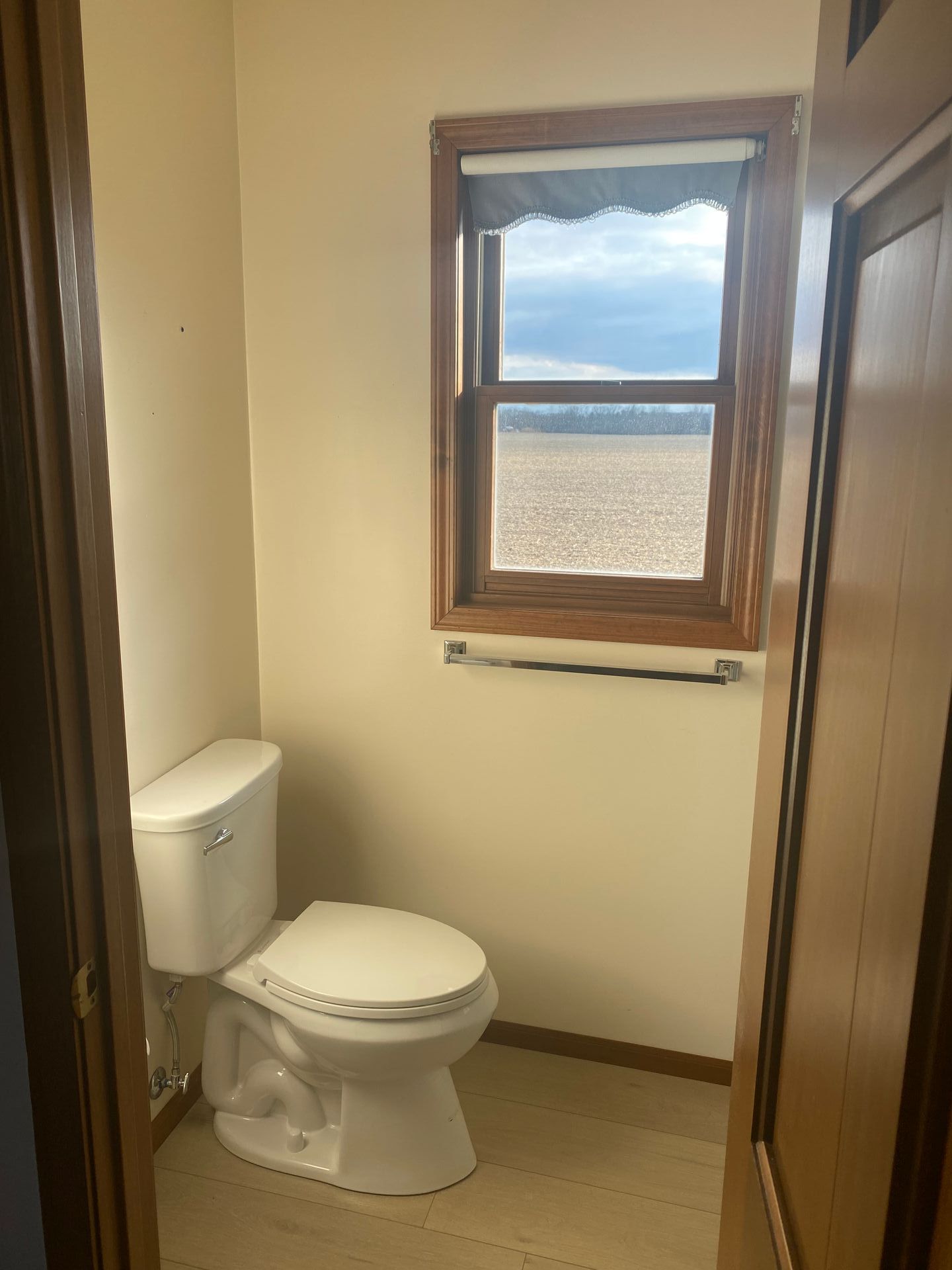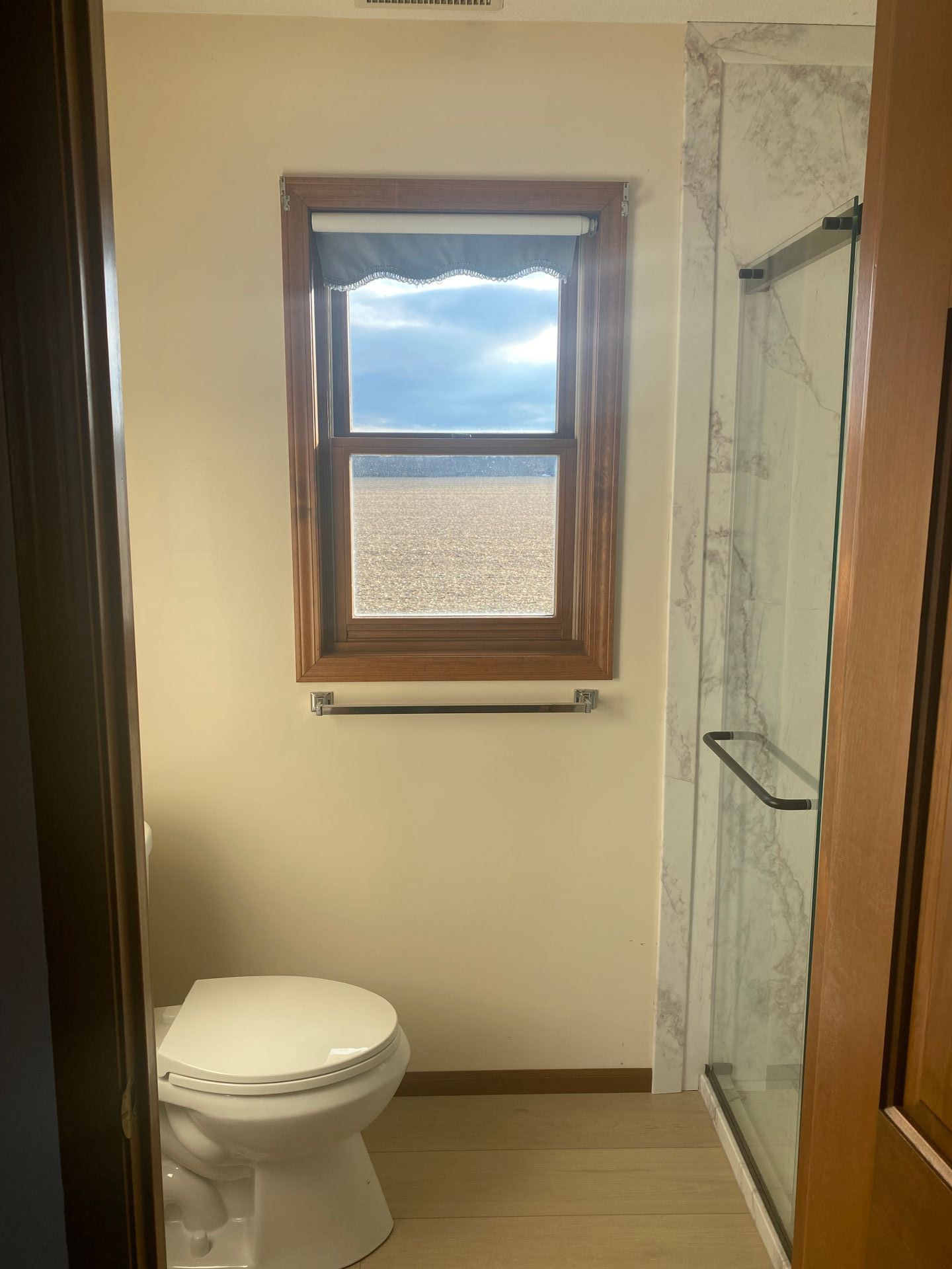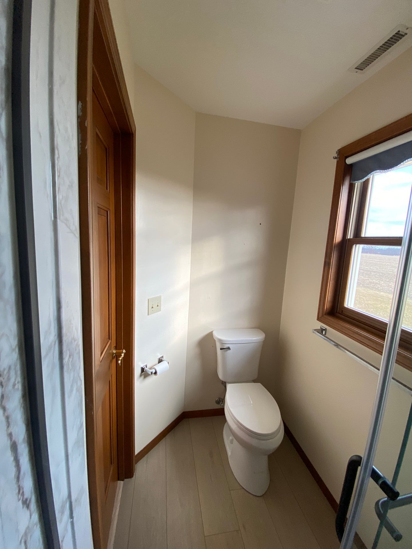 The leak left us with a new spacious shower, sliding glass door, updated fixtures, and flooring.
