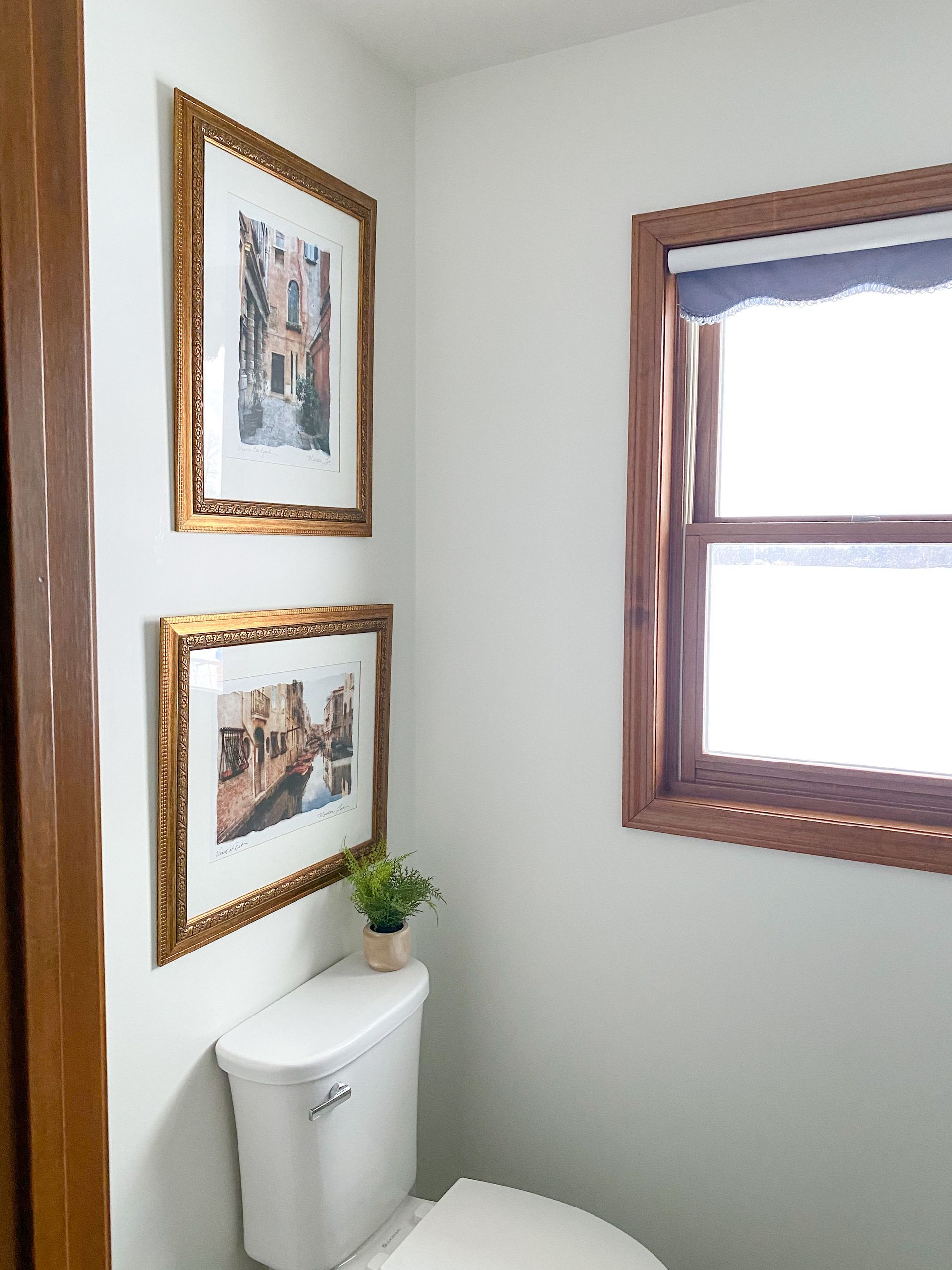 This bathroom refresh made a huge impact in a short amount of time! I started by removing the towel bar, toilet paper holder, and valance brackets from the window frame. The walls had a slight texture from the previous paint so I decided to sand all of the walls using 80 grit sandpaper. If you have a large area to complete, I highly recommend using a sanding pole to save time. After the walls were sanded, I patched the holes using my favorite dry wall spackling and spackle knife. Once the spackling was dry, I used 220 grit sandpaper to smooth over the spackling for a seamless transition. I washed the walls down using a microfiber cloth and warm water removing the remaining dust from the surface. The original paint was a sheen finish and the new paint I chose has an eggshell finish, therefore I needed to prime the walls. Since I primed, I needed to sand the walls one last time after it was dry and before I could paint. I went back in with my 220 grit sandpaper for a light scuff to ensure the walls were extra smooth. Then once again, I wiped them down with my wet microfiber cloth. After all of the prep work was completed, I painted all of the walls using Sherwin Williams paint in the color Alabaster.